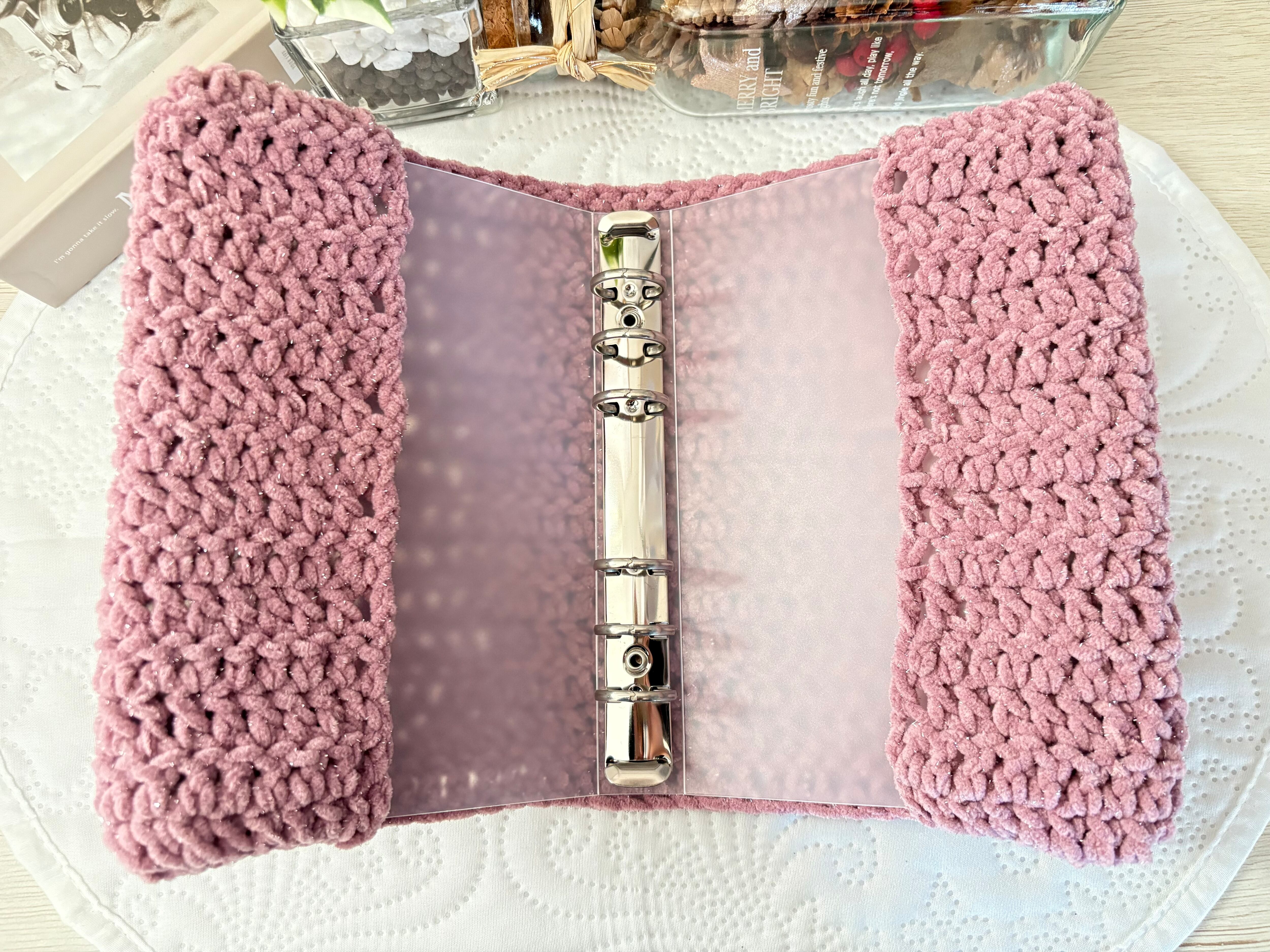 1つ1つ手編みで仕上げた一点物のバインダーカバー。